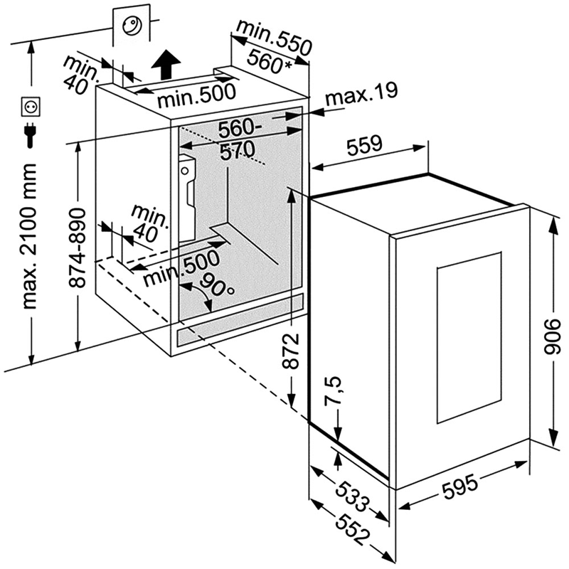 Подходящие размеры ниши обеспечивают максимальную гибкость при установке устройства. Высота варьируется от 87,4 до 88 сантиметров, ширина составляет от 56 до 57 сантиметров, глубина равна 55 сантиметрам. Таким образом, устройство идеально вписывается практически в любую кухонную мебель или интерьер комнаты.