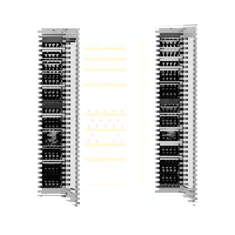 Шкаф оснащен 10 деревянными полками, которые не только красиво выглядят, но и бережно хранят ваши любимые напитки. Дерево помогает сохранять оптимальную температуру и влажность для вин. Модель оснащена двумя отдельными зонами, каждая из которых регулируется отдельно. Такой режим идеально подходит для хранения разных сортов вина — например, красного и белого — при оптимальных условиях.