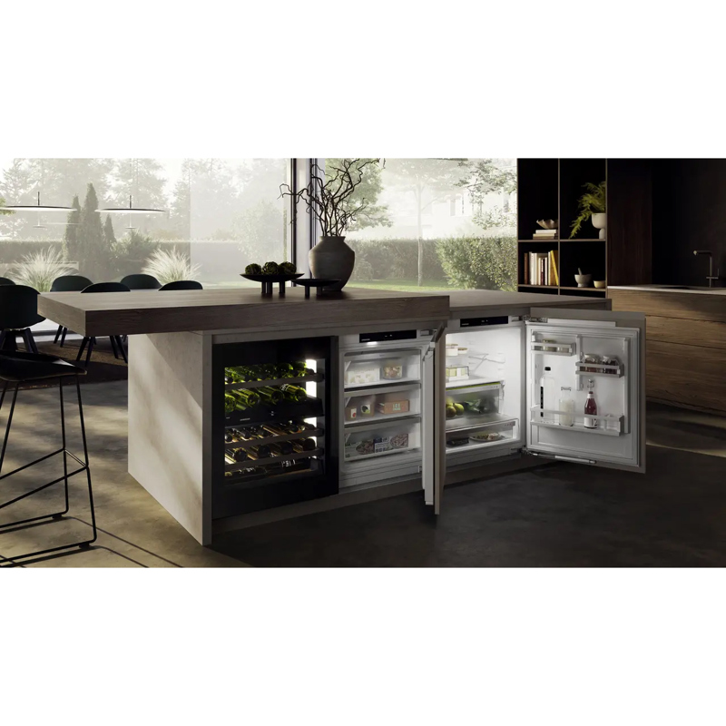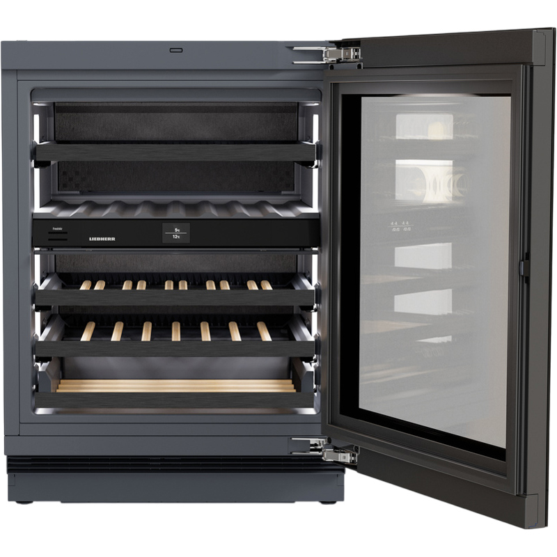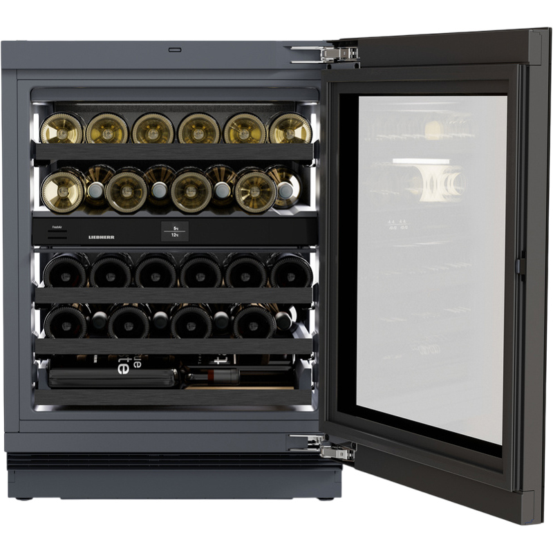 Встраиваемый винный шкаф Liebherr UWgbi 3682-20 001 входит в линейку Vinidor Selection и позволяет хранить до 32 бутылок. Общий объем составляет 95 л.