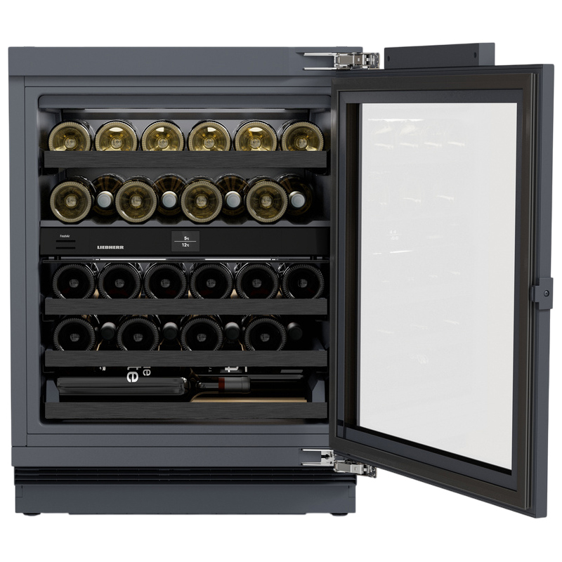 Встраиваемый винный шкаф Liebherr UWpri 3662-20 001 входит в линейку Vinidor Selection и позволяет хранить до 32 бутылок. Общий объем составляет 93 л.