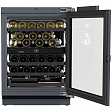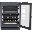 Дверь снабжена стеклопакетом, который обеспечивает качественную термоизоляцию и защищает содержимое от воздействия ультрафиолета — солнечные лучи могут негативно сказаться на качестве вин. Система door-on-door panel ready позволяет установить фасадную рамку — винный шкаф хорошо впишется практически в любой интерьер. Шкаф устанавливается в нишу, высота — 86-92 см.