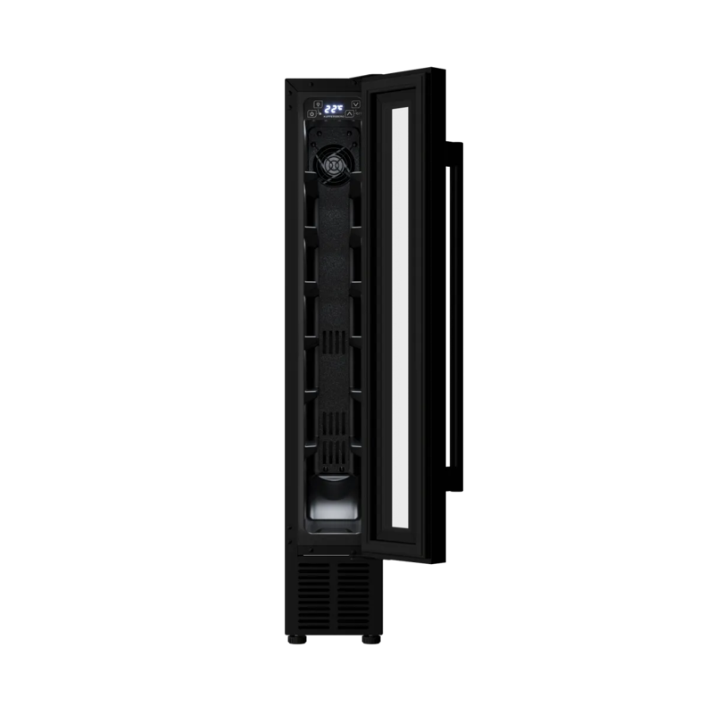 Встраиваемый винный шкаф KUPPERSBERG RBW 15 представляет собой элегантное решение в современном стиле High-Tech. Чёрный цвет корпуса и компактные размеры делают его идеальным выбором для небольших помещений, где каждый сантиметр на счету.