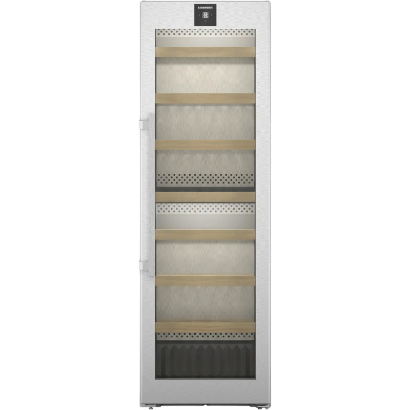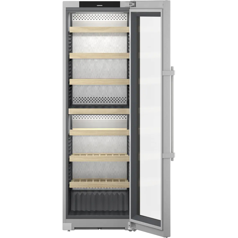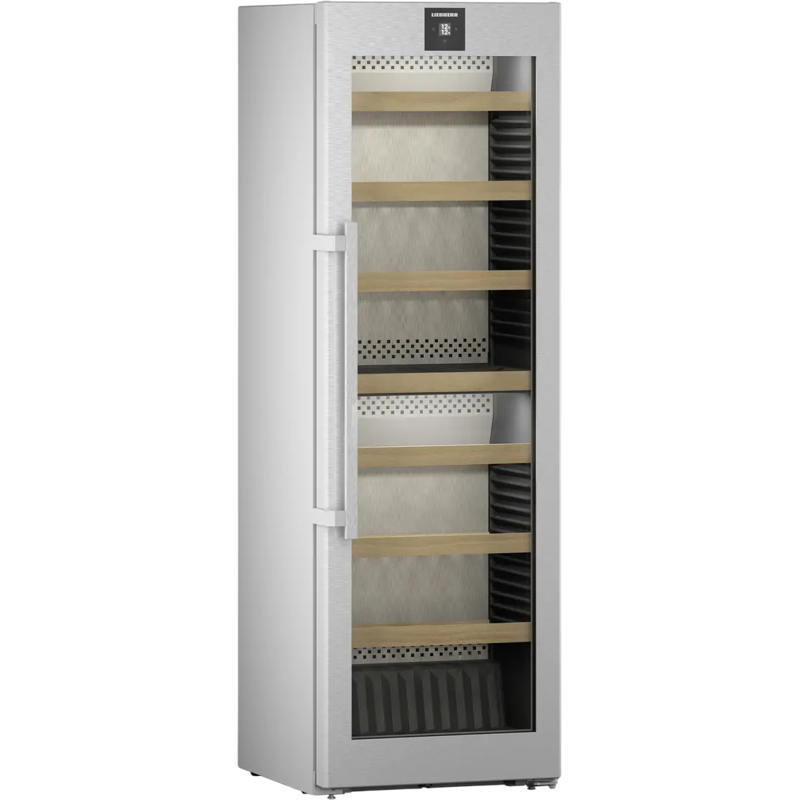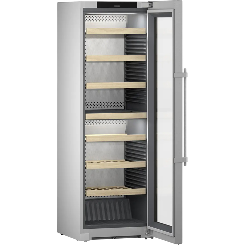Винный шкаф Liebherr WSbsi 5252-20 относится к линейке Vinidor. Прибор вмещает до 155 бутылок типа Бордо 0,75 л и обладает габаритами 185,4 х 59,7 х 67,5 см.