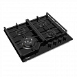 Основание панели изготовлено из ударопрочного стекла черного цвета. Этот материал отличается высокой устойчивостью к перепадам температур и механическим воздействиям, а гладкая поверхность легко очищается от жира и загрязнений. Посуда устанавливается на надежные чугунные решетки, которые не деформируются от жара и обеспечивают стабильное положение как тяжелых жаровен, так и легких ковшей.