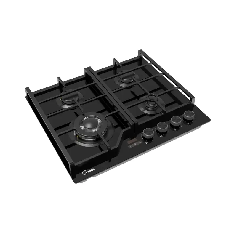 Газовая варочная поверхность Midea MG697TTGB выполнена в черном цвете. Модель оснащена 4 конфорками, электроподжигом и газ-контролем.