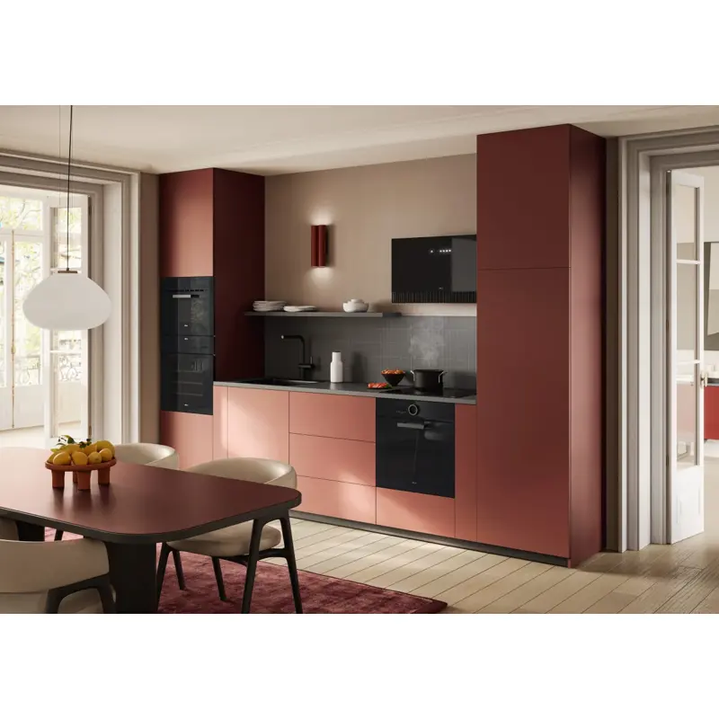 Гладкая черная стеклокерамическая поверхность без рамки легко вписывается в любой современный кухонный стиль. Благодаря тому, что сама панель в процессе работы не нагревается, а загрязнения не пригорают, уход за ней чрезвычайно прост: достаточно протереть поверхность мягкой влажной тряпкой.