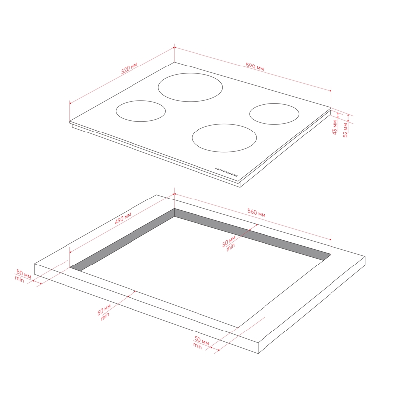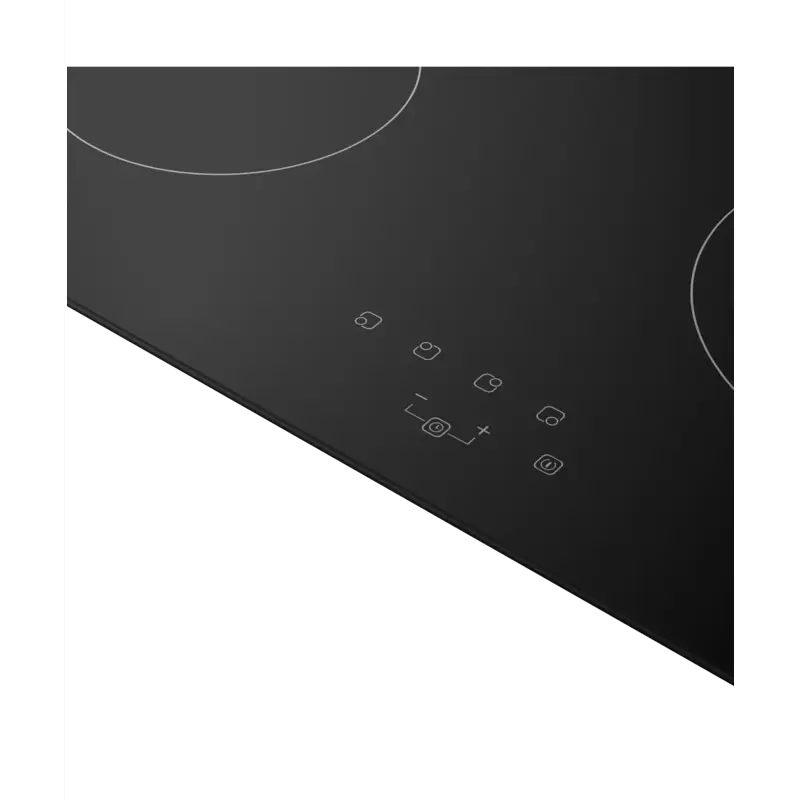 Функции автоматического отключения и блокировки панели управления обеспечивают безопасность во время эксплуатации. Индикаторы остаточного тепла помогают избежать ожогов и случайных травм. Для установки требуется ниша размером 560x490 мм. Варочная поверхность поставляется без вилки, кабель длиной 110 см обеспечивает удобство подключения к электросети с мощностью 6 кВт.