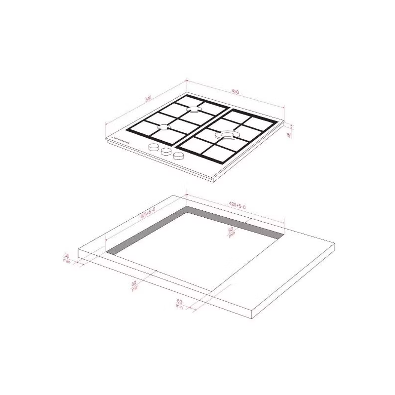 Размер 45 см делает эту варочную поверхность идеальной для небольших кухонь или для тех, кто не нуждается в большом количестве конфорок.