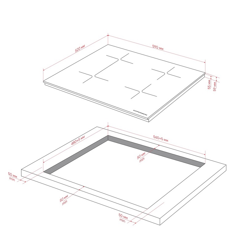 Индукционная технология обеспечивает мгновенный нагрев, высокий КПД и безопасность – поверхность остается холодной вне зоны нагрева.