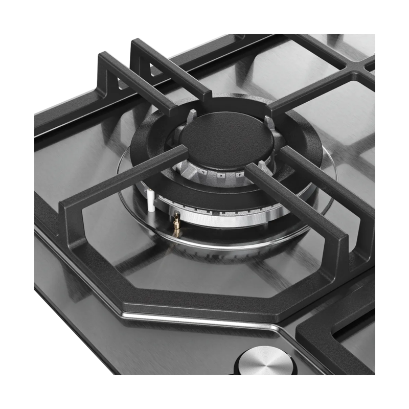 Поверхность выполнена из высококачественной нержавеющей стали, устойчивой к механическим повреждениям и лёгкой в уходе. Сочетание материалов и продуманный дизайн делают варочную панель стильным элементом кухонного интерьера.