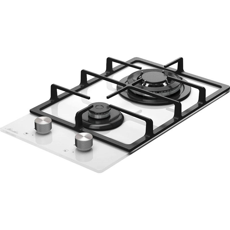 Газовая варочная панель Monsher MGG 33 Blanc из коллекции High-Tech — модель типа «Домино» — ширина составляет всего 30 см. Устройство подойдет для небольших кухонь и тех, кому для приготовления пищи достаточно двух конфорок. Также несколько подобных панелей можно объединить и создать индивидуальную комбинацию под собственные потребности.