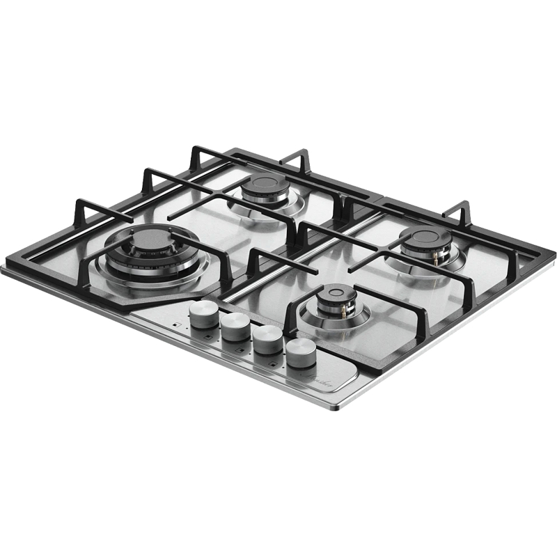 Передняя правая конфорка малая — имеет мощность 1000 Вт, передняя левая — усиленная на 3400 Вт. Обе задние стандартные — по 1750 Вт. Разная мощность и диаметр дают возможность готовить в посуде разного размера: от миниатюрной турки до больших сковород и кастрюль. Используются высококачественные и долговечные горелки Chinese SABAF.