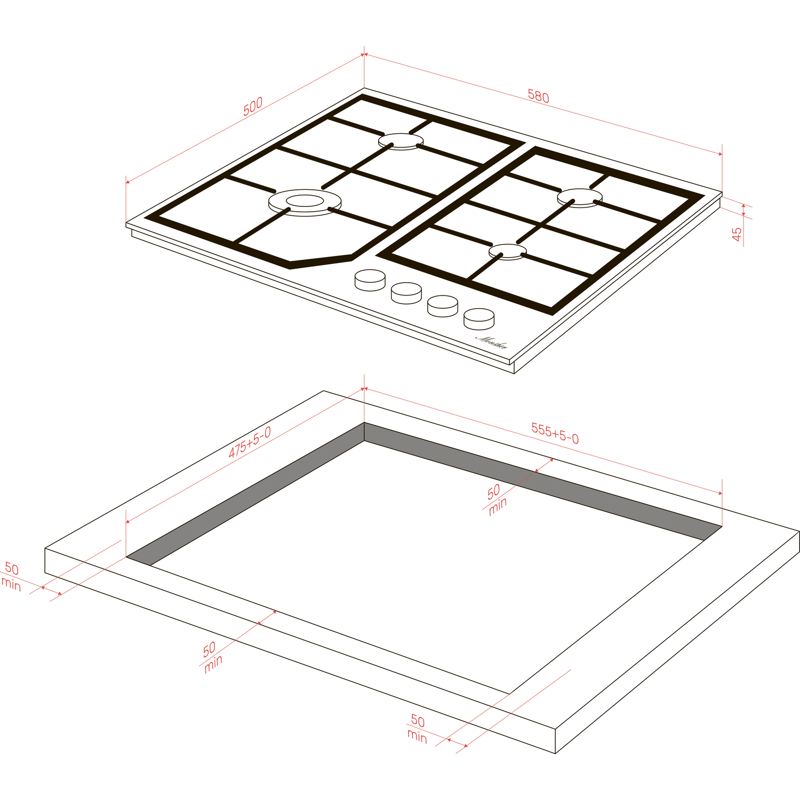 Поверхность панели выполнена из нержавеющей стали — это прочный материал, который легко поддается очистке и стильно выглядит. Устройство поставляется с сетевым кабелем длиной 95 см. Габариты модели: 58 х 50 х 5,2 см. Подключение возможно как к магистральному, так и к баллонному газу, для чего прилагается набор форсунок.