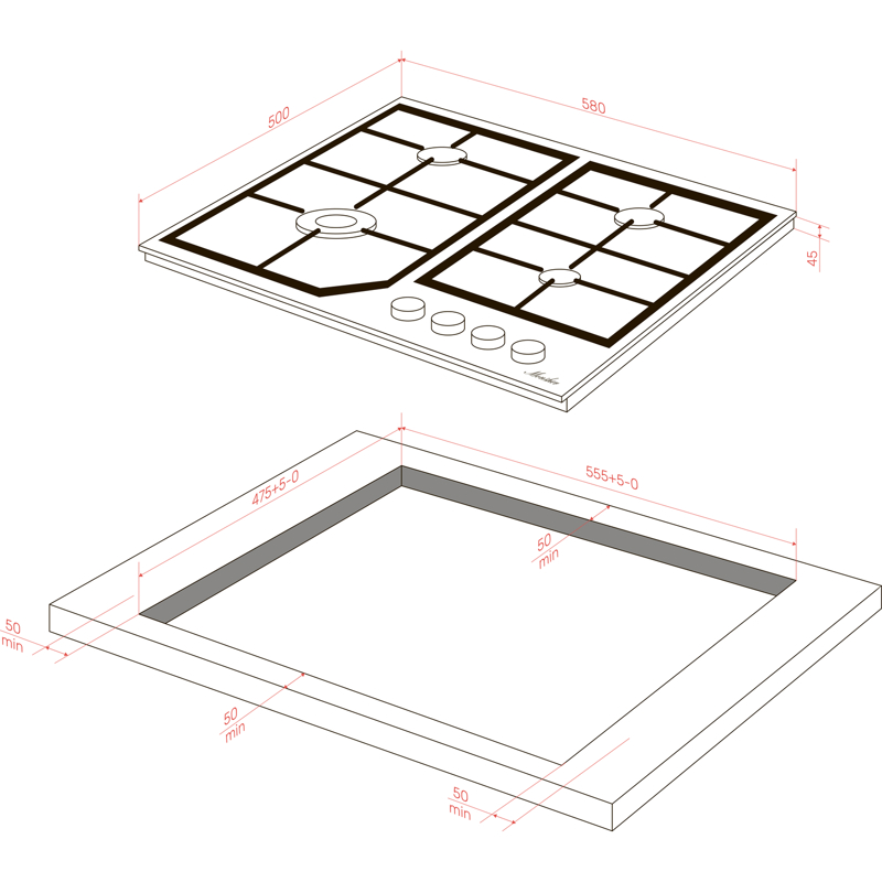 Поверхность панели покрыта эмалью — это прочный материал, который легко поддается очистке и стильно выглядит. Устройство поставляется с сетевым кабелем длиной 95 см. Габариты модели: 58 х 50 х 5,2 см. Подключение возможно как к магистральному, так и к баллонному газу, для чего прилагается набор форсунок.