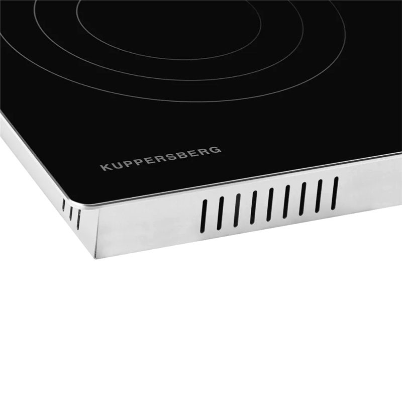 Kuppersberg ECS 632 F оснащена функцией блокировки управления, предотвращающей случайное включение, что идеально для семей с детьми. Автоматическое отключение при длительном бездействии и защита от ошибок (например, ER03) минимизируют риски. Эти функции обеспечивают безопасность и спокойствие при использовании.
