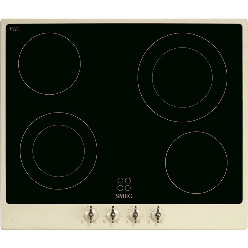 Варочная панель Smeg Coloniale P864PO выполнена в классическом стиле с кремовой рамкой и латунной фурнитурой. Это придает ей элегантный и утонченный вид, который organically впишется в любой интерьер, особенно в кухни, оформленные в ретро-стиле.