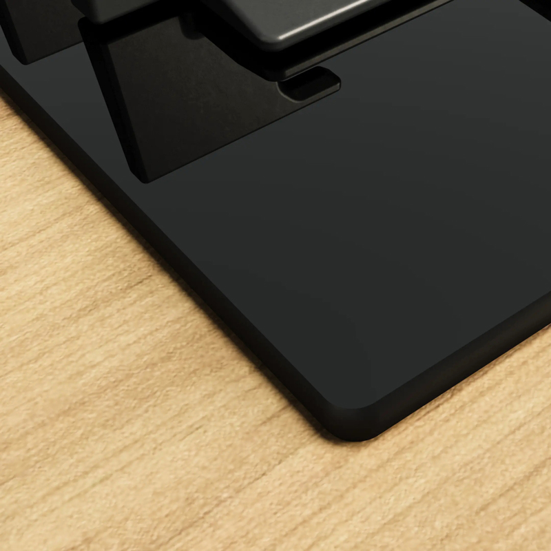 Чёрная поверхность из закалённого стекла придаёт панели визуальную глубину и элегантность, легко сочетаясь с любым стилем кухни. Низкий профиль высотой всего 4,5 см и продуманная геометрия рамки позволяют выполнить аккуратный монтаж заподлицо со столешницей. Стандартные размеры и ширина монтажного проёма (56–56,2 см) делают встраивание простым и предсказуемым.
