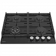 Поверхность панели выполнена из черного высокопрочного стеклокерамического материала. Он отличается высокой устойчивостью к механическим воздействиям и перепадам температур, а также легко очищается от загрязнений. Прочная эмалированная решетка надежно удерживает посуду любого размера и веса.