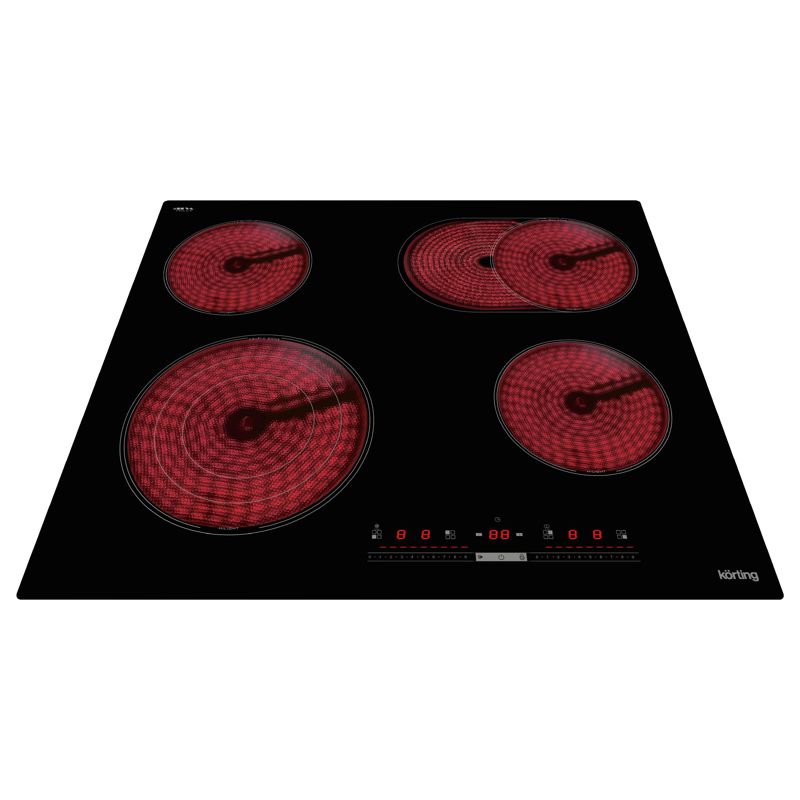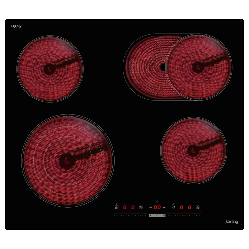 Зоны нагрева Korting оборудованы современными нагревательными элементами HiLight. В этих конфорках в качестве нагревательного элемента применяется уложенная змейкой лента из высокоомного сплава, конфорка достигает установленной рабочей температуры буквально за считанные секунды, позволяет плавно регулировать мощность, излучаемое тепло очень равномерно распределяется по всей рабочей зоне.