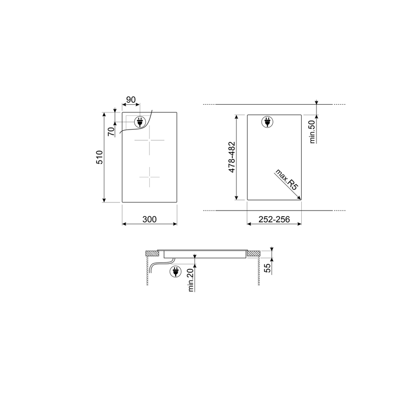 Встраиваемые газовые панели SMEG SER60SGH3