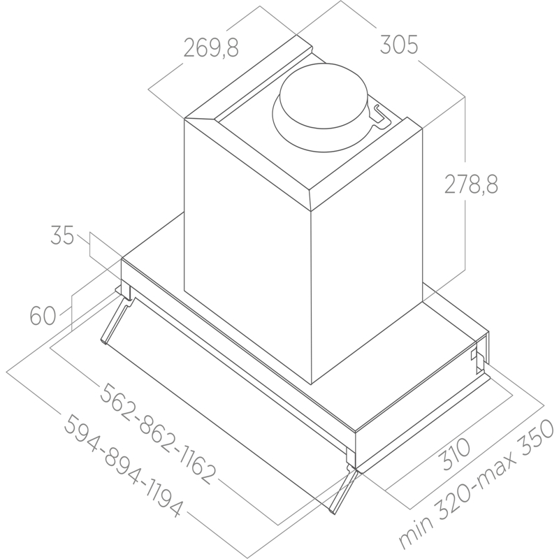 В комплект входит алюминиевый жироулавливающий фильтр, который можно очищать в посудомоечной машине. Система Maintenance Alarm своевременно сигнализирует о необходимости его очистки или замены угольного фильтра (для режима рециркуляции). Для монтажа требуется соблюдать минимальные расстояния: 57 см над газовой плитой и 50 см над электрической поверхностью.