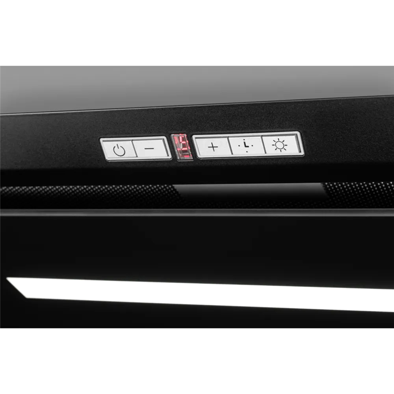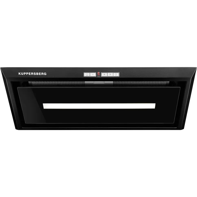 Встраиваемая вытяжка Kuppersberg Intro 60 Black из коллекции High-Tech может работать в режиме отвода и рециркуляции воздуха, производительность достигает 1500 м³/ч и 1000 м³/ч соответственно. Для максимальной эффективности модель рекомендуется использовать в помещениях площадью до 40 м² — удобный вариант для больших кухонь, совмещенных со столовой или гостиной, а также квартир-студий.