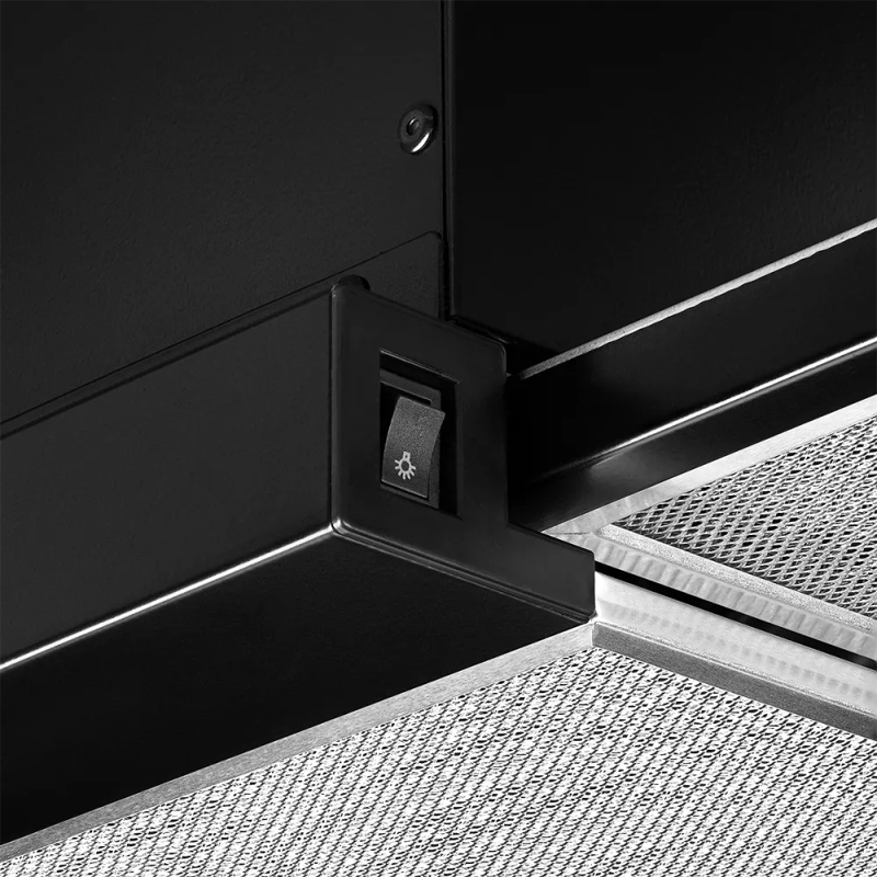 Встраиваемая вытяжка KUPPERSBERG SLIMTURBO 60 GB выполнена в элегантном чёрном цвете, который гармонично сочетается с любым кухонным интерьером. Компактные размеры (ширина 55,2 см, высота 25,5 см, глубина 28 см) позволяют легко встроить устройство в кухонный шкаф.