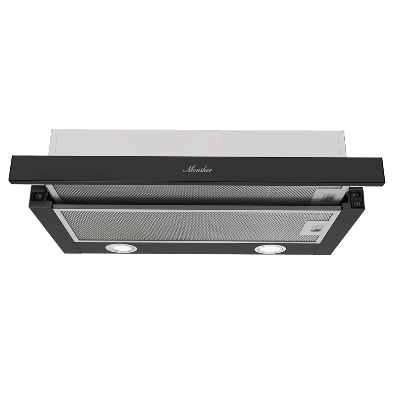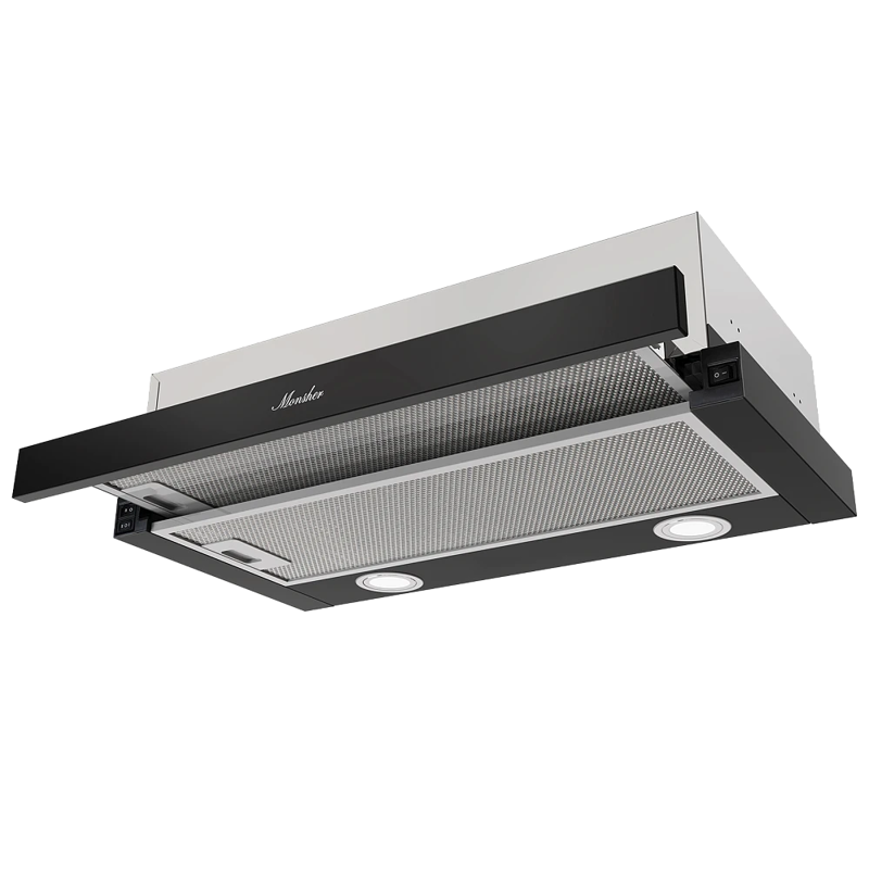 Современная телескопическая встраиваемая вытяжка MONSHER Loin 60 Noir разработана для эффективного удаления запахов и пара, сочетая высокую производительность, тихую работу и лаконичный дизайн в стиле хай-тек. Идеальное решение для тех, кто ценит функциональность и чистый дизайн. Она обеспечит свежий воздух на кухне, оставаясь практически незаметной в гарнитуре, когда не используется.