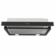 Модель выполнена в классическом черном цвете, что делает ее универсальным элементом для большинства кухонных интерьеров, особенно в современных стилях. Для монтажа требуется стандартный кухонный шкаф шириной 60 см. Вытяжка может работать в двух режимах: отвод воздуха в вентиляционную шахту или рециркуляция с фильтрацией через угольные фильтры.