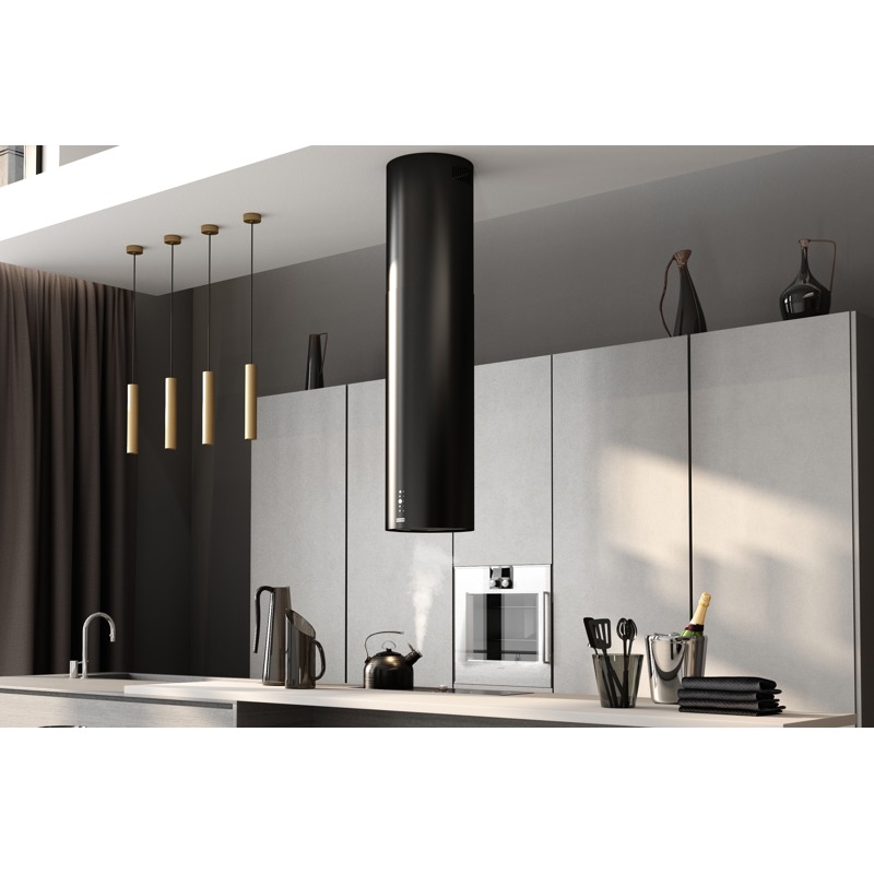 - Стильный дизайн: черный цвет вытяжки придает кухне изысканный и современный вид, подчеркивая ее стиль и элегантность.