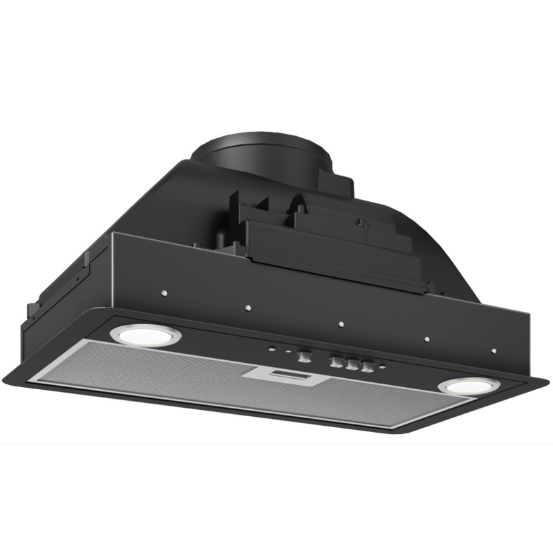 - Современный дизайн: Выполненная в черном цвете, вытяжка добавляет изысканности и стиля кухонному пространству, подчеркивая его современный или минималистичный интерьер.