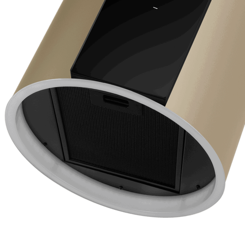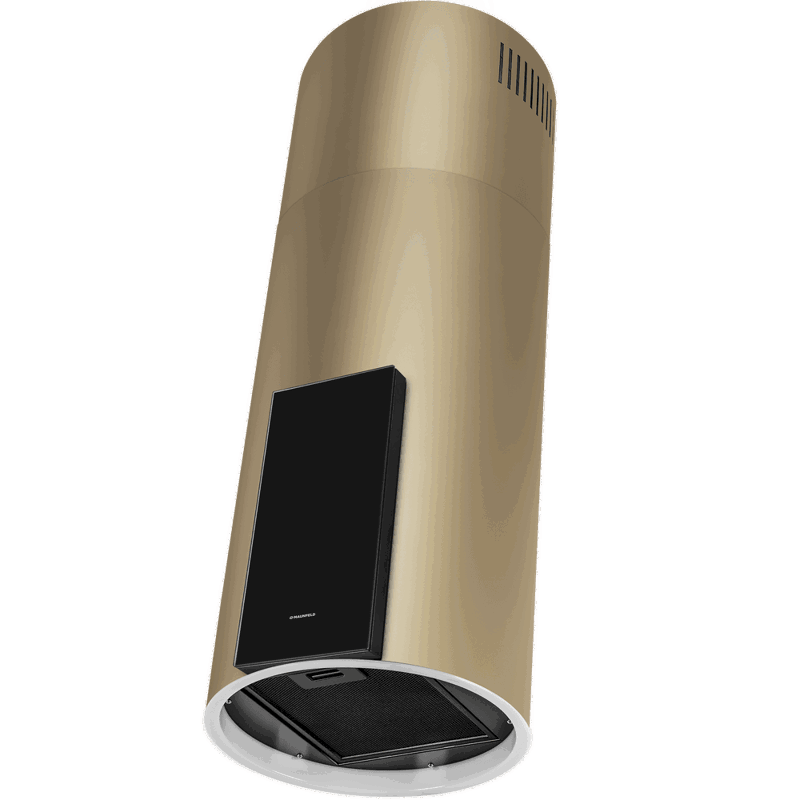 Корпус выполнен из высококачественных материалов в благородном золотом цвете. Компактные размеры и современный дизайн позволяют гармонично вписать вытяжку в любой кухонный интерьер.