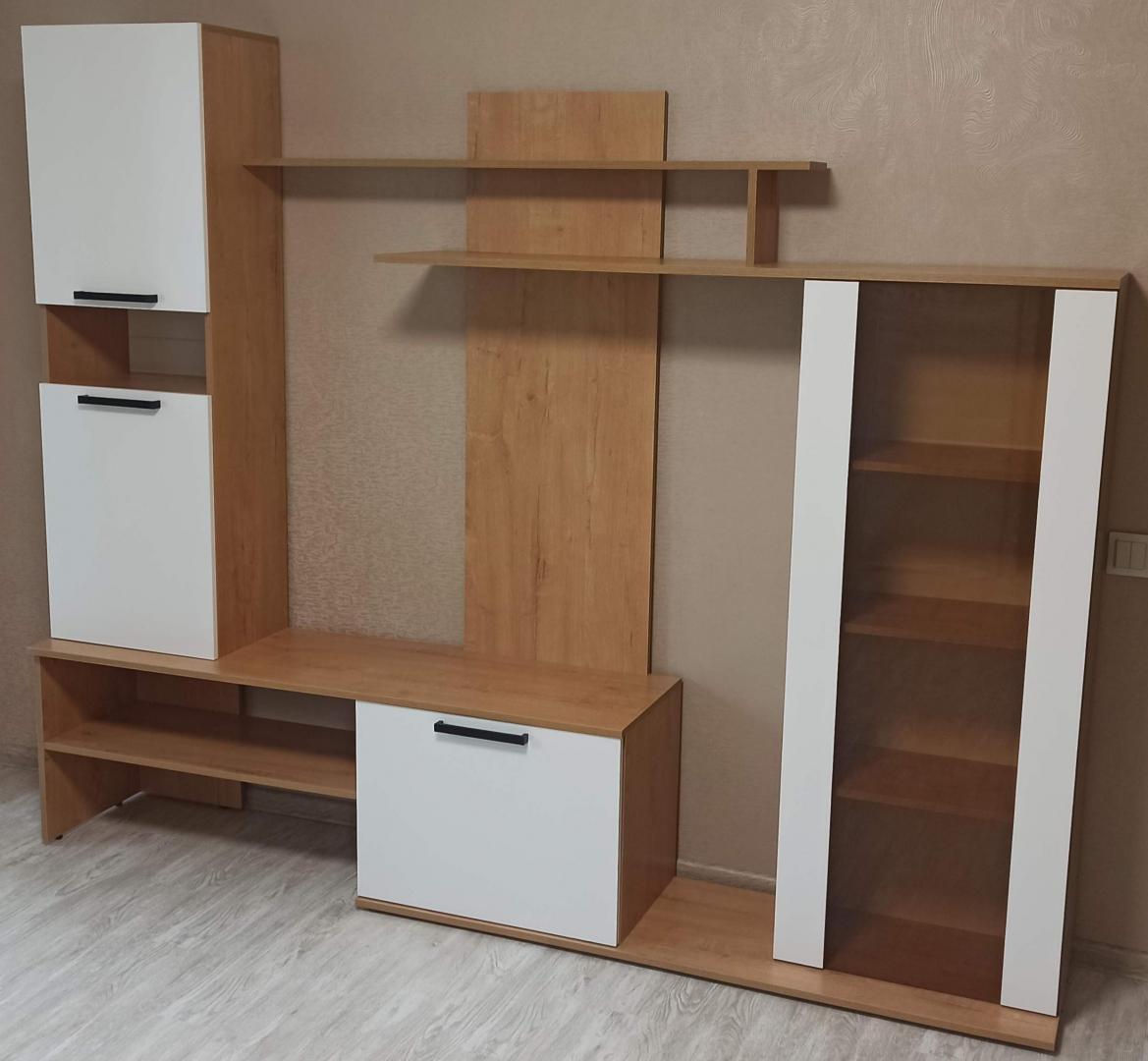 В гостиной "Данко" предусмотрено множество мест для хранения. В комплект входят тумба под ТВ, шкаф напольный с полками, шкаф-пенал, ниша/тумба для ТВ и полки. Это позволяет разместить все необходимые вещи и аксессуары.
