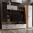 Стенка Крокус не только стильная и современная, но и функциональная гостиная. Здесь отлично смотрится большой телевизор, имеются отделения для хранения аппаратуры, дисков, журналов, в стеллаже прекрасно разместятся любимые книги, а на полках есть место декоративным мелочам и фотографиям. Кроме этого, достоинством модели является вместительный шкаф со штангой и полкой для одежды.