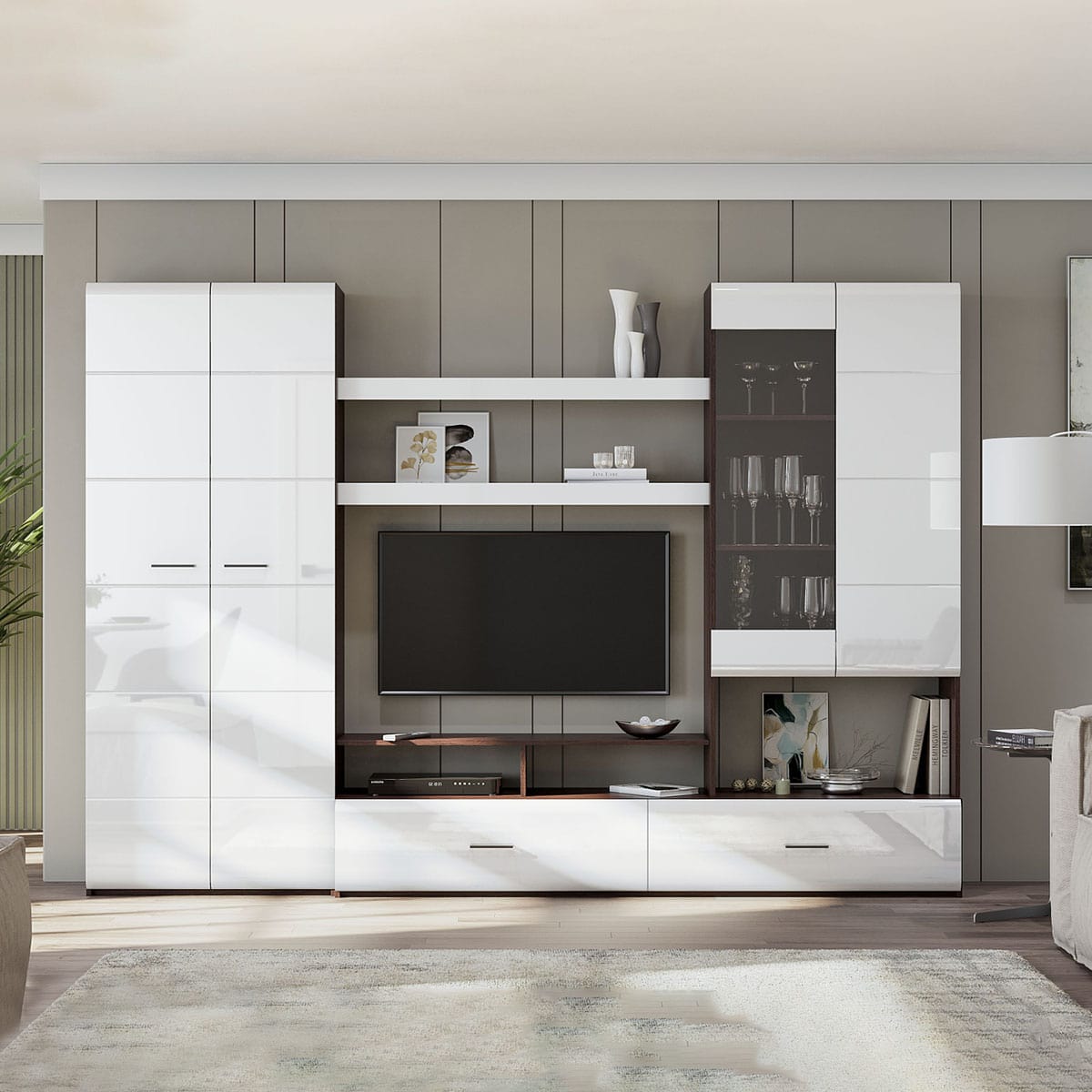 Простота и изысканный вкус - главные достоинства гостиной МГС7! Материал: ЛДСП/МДФ Размеры ниши под ТВ (ШхВхГ): 1200х758х300 мм.