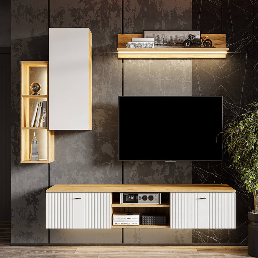 1. Тумба ТВ Милан со створками и нишей 1601x368x418 мм