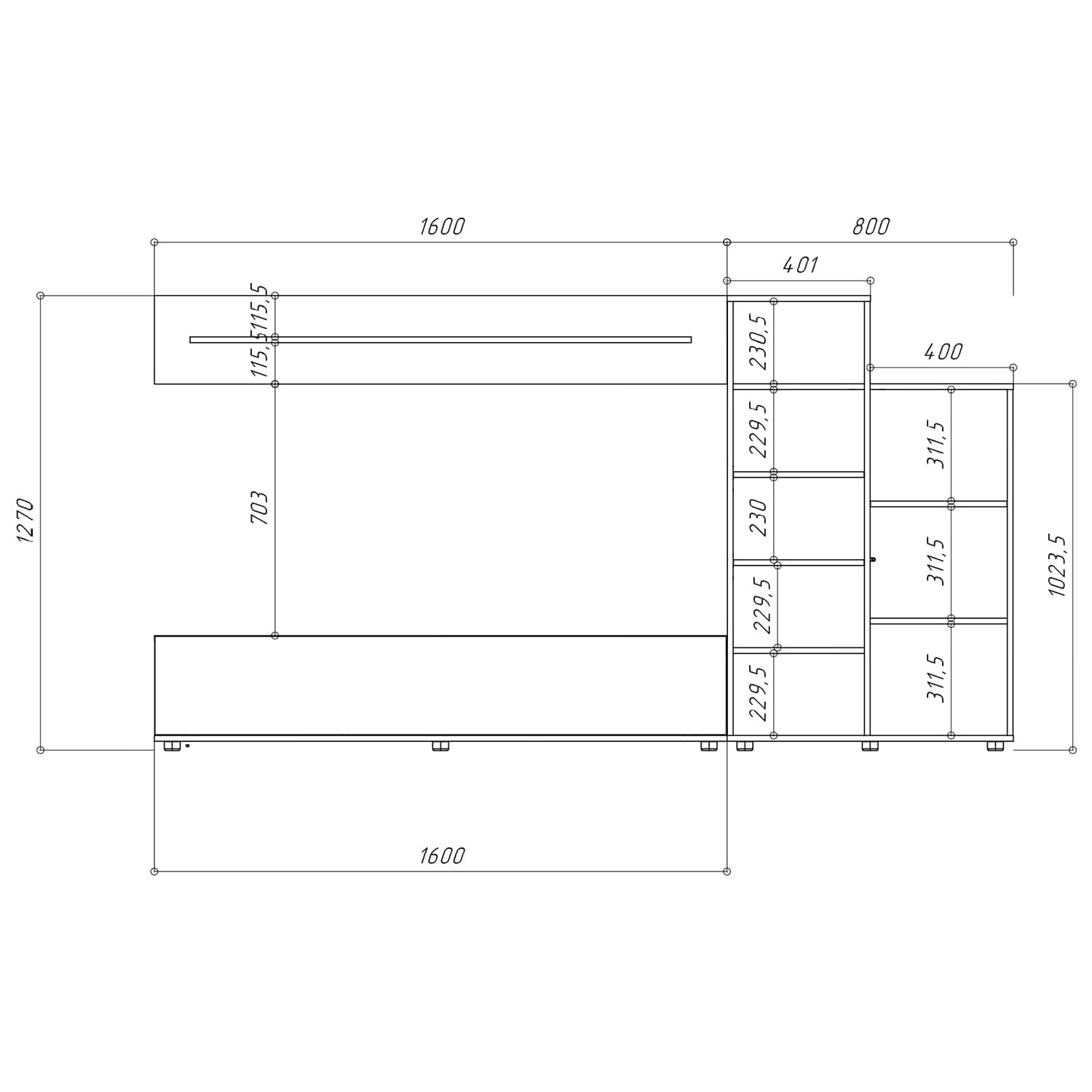 Габариты (ШхГхВ): 2700x500x2100 мм