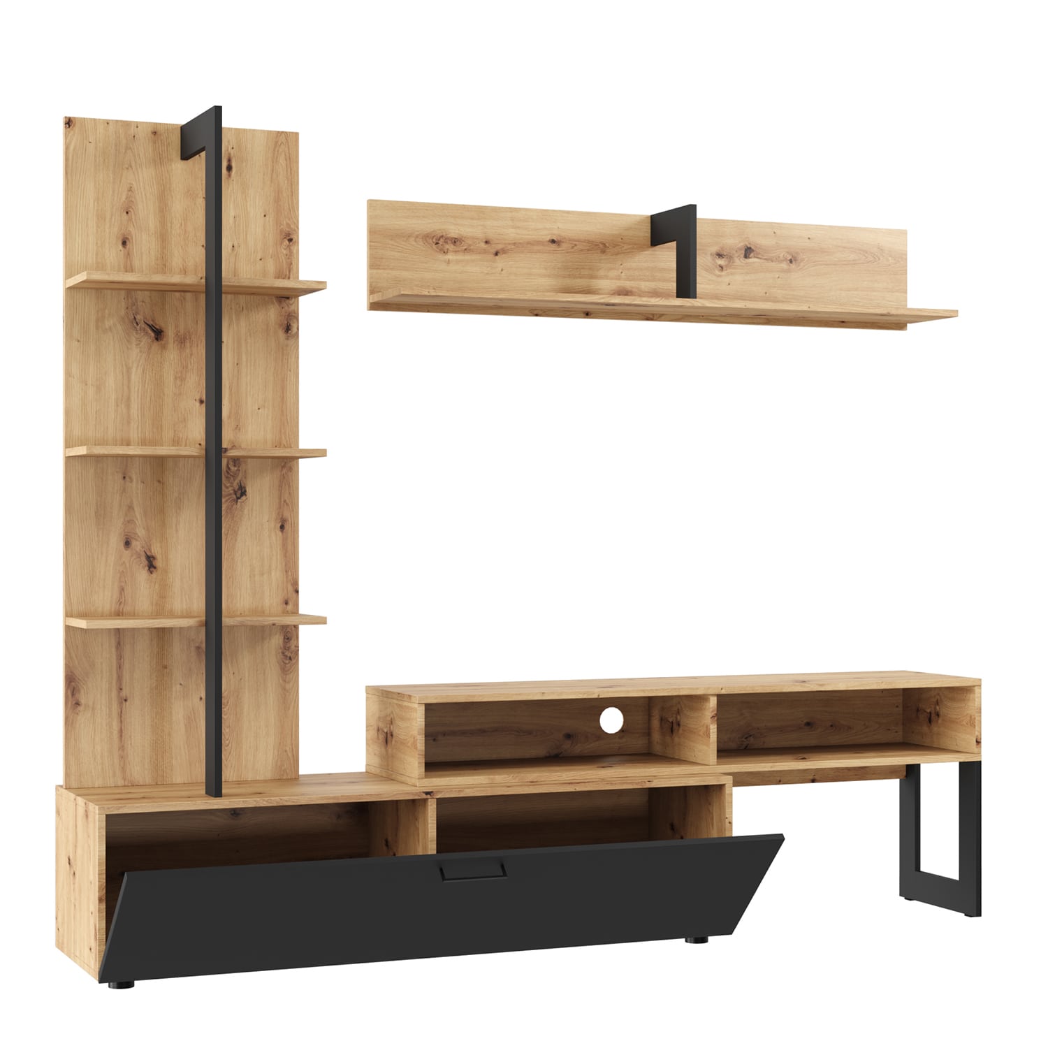 Гостиная НК-мебель JUNO – это стильный и функциональный набор мебели для гостиной, выполненный в стиле лофт. Цвет Дуб Артизан/Черный придает изделию особый шарм и позволяет гармонично вписаться в любой интерьер.