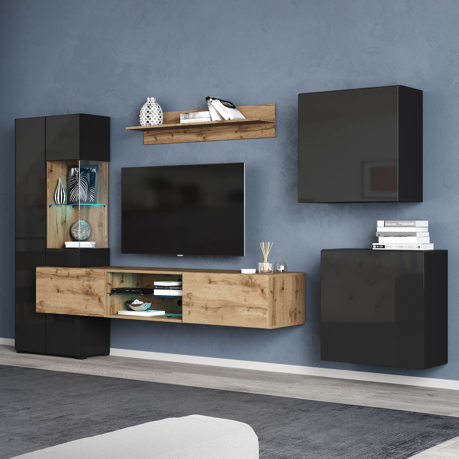 Цвет фасада: Дуб вотан/Черный глянец