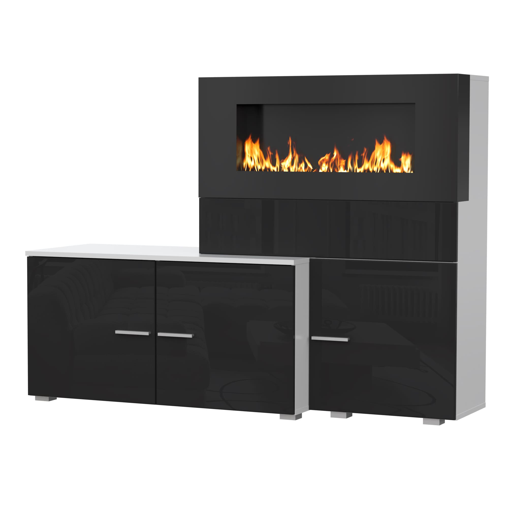 Гостиная НК RALF Белый/Черный глянец с биокамином