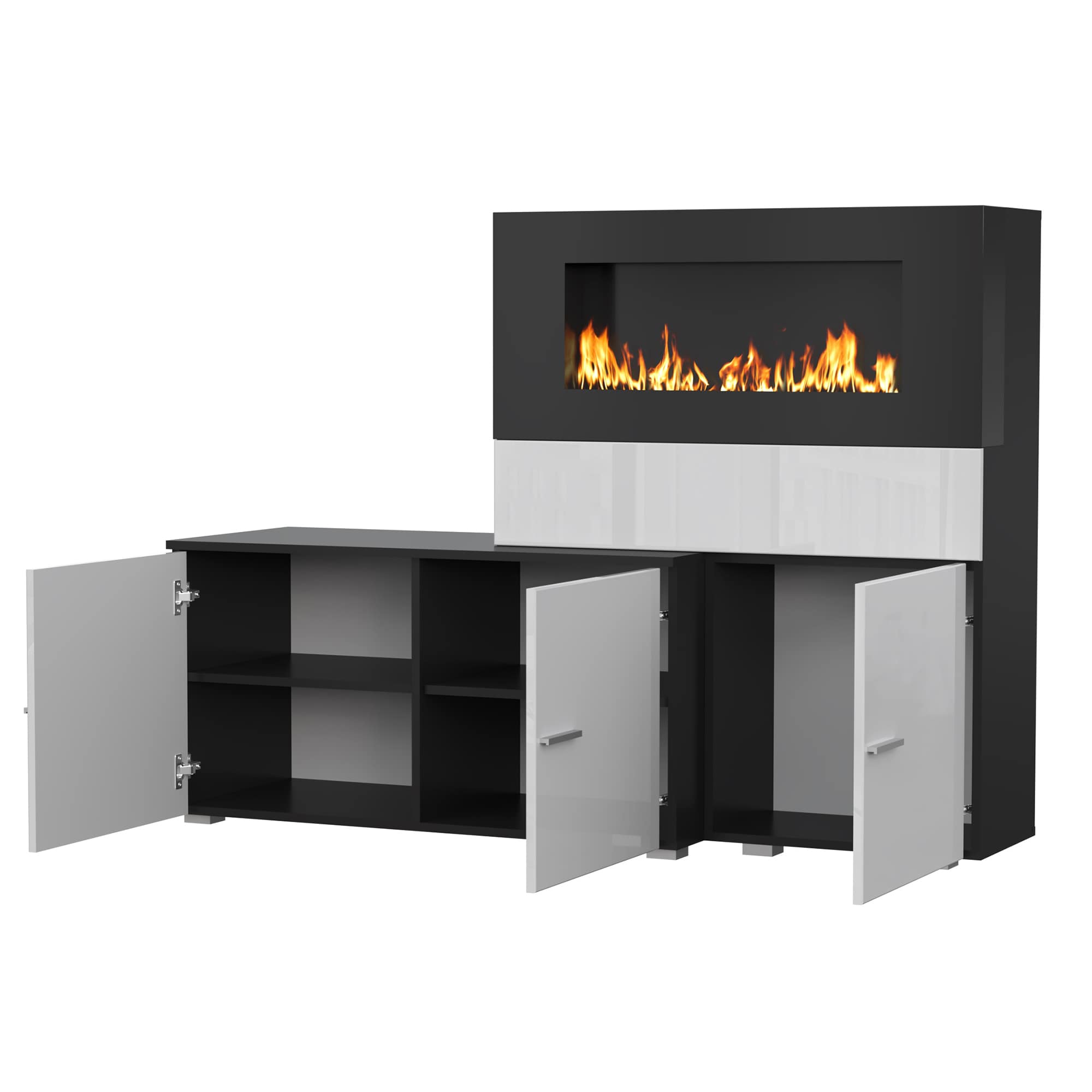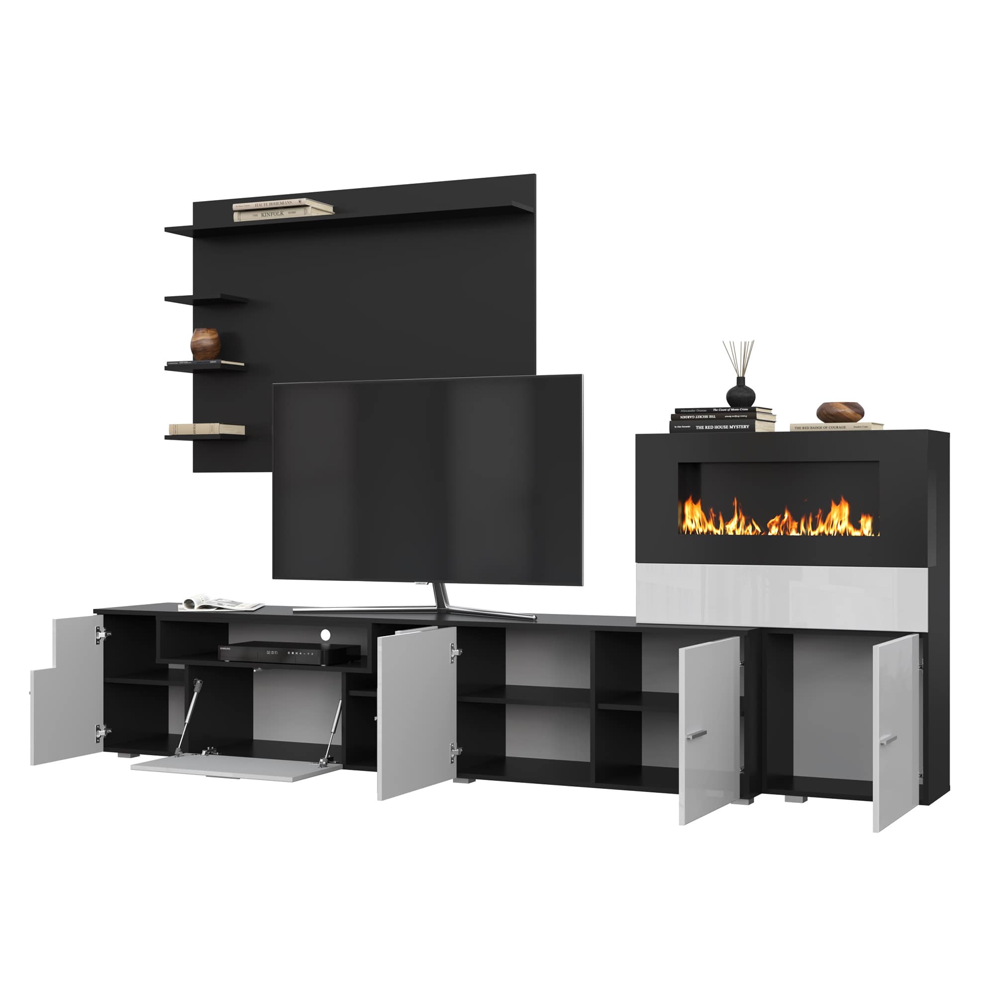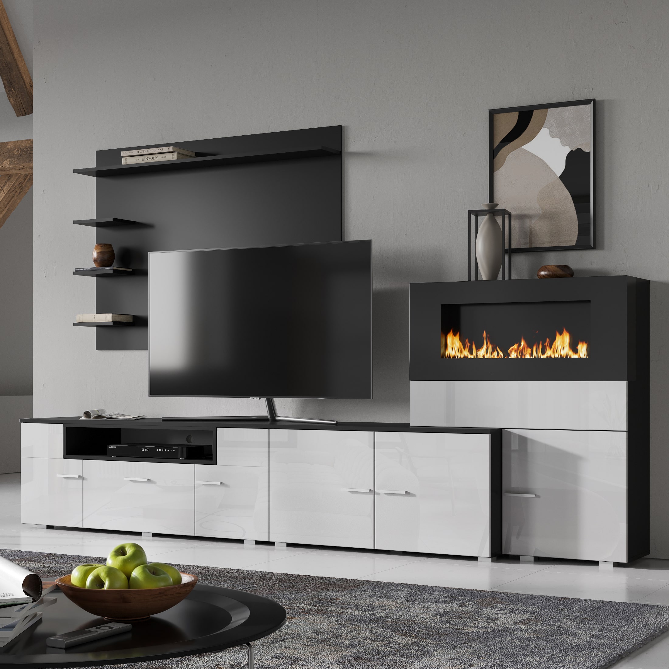 Гостиная НК RALF Черный/Белый глянец с биокамином