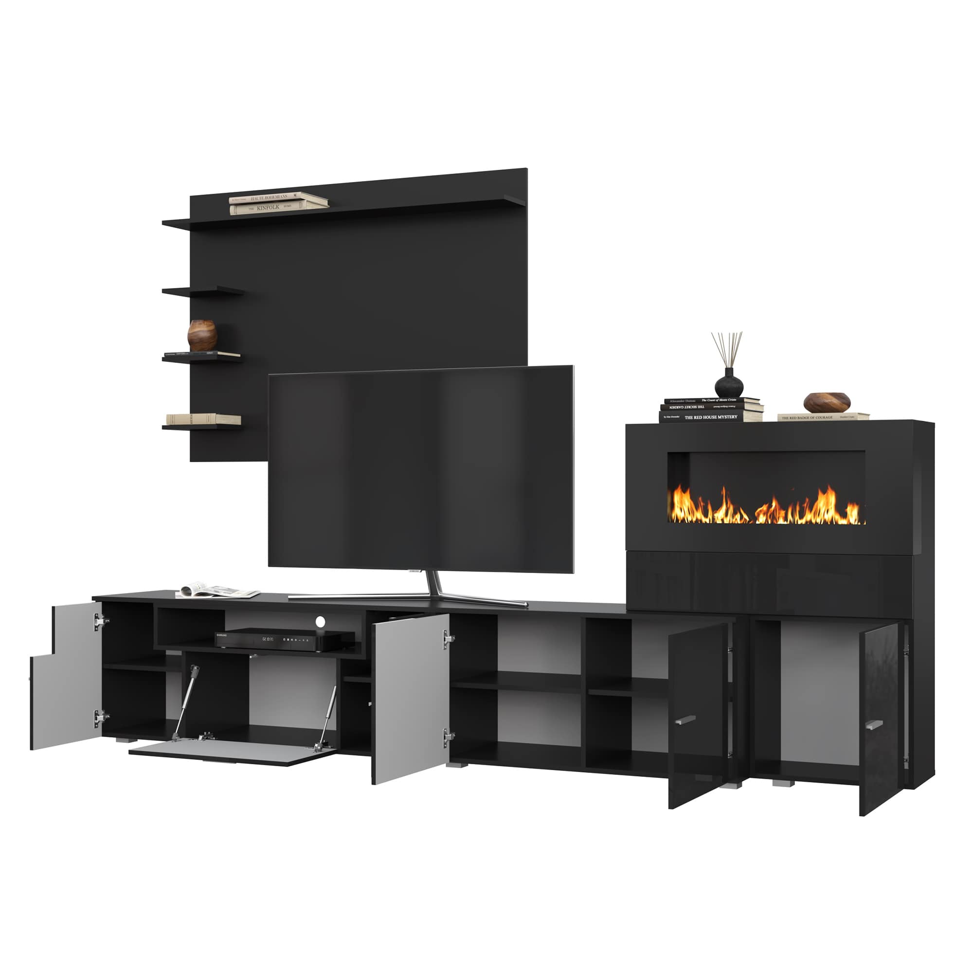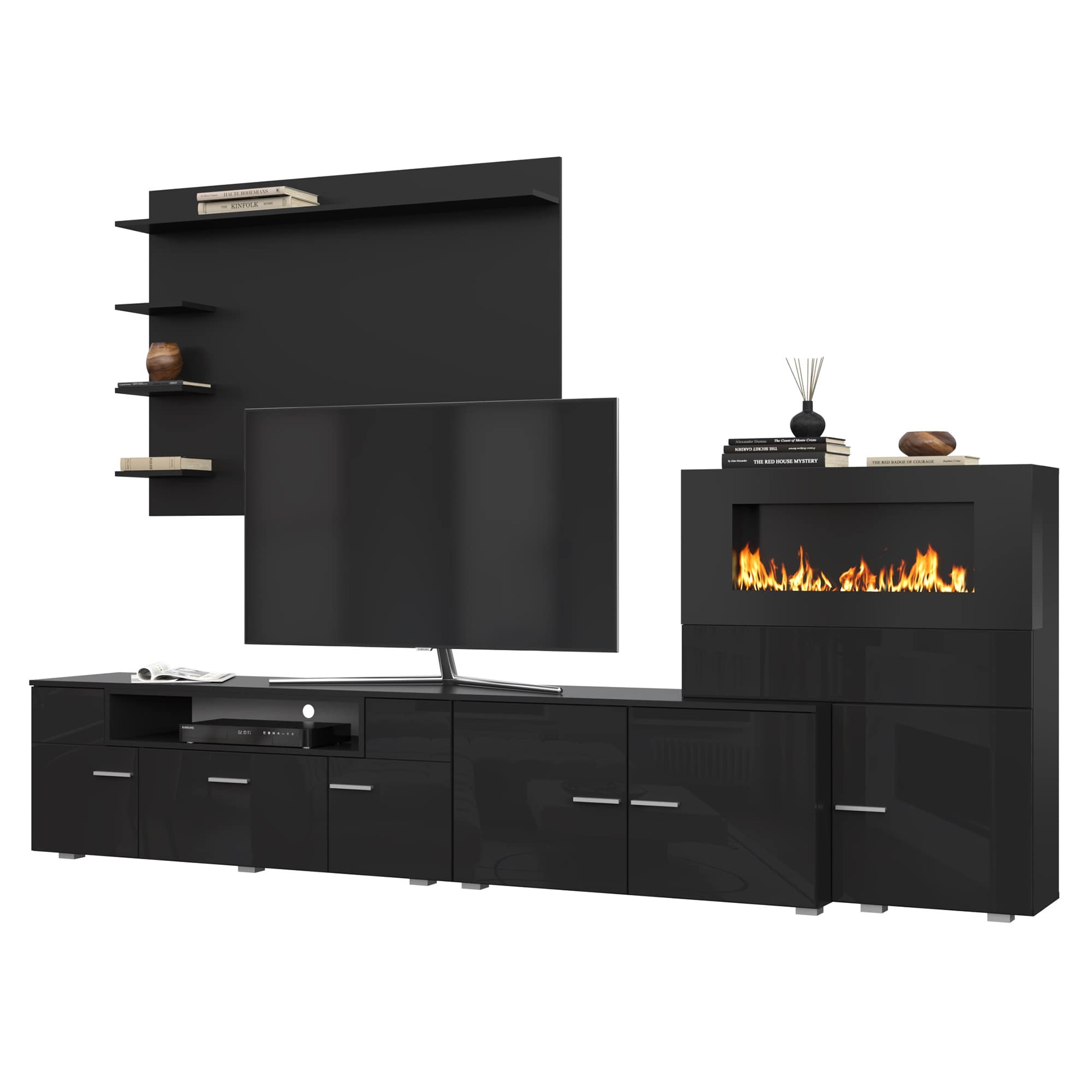 Гостиная НК RALF Черный/Черный глянец с биокамином