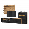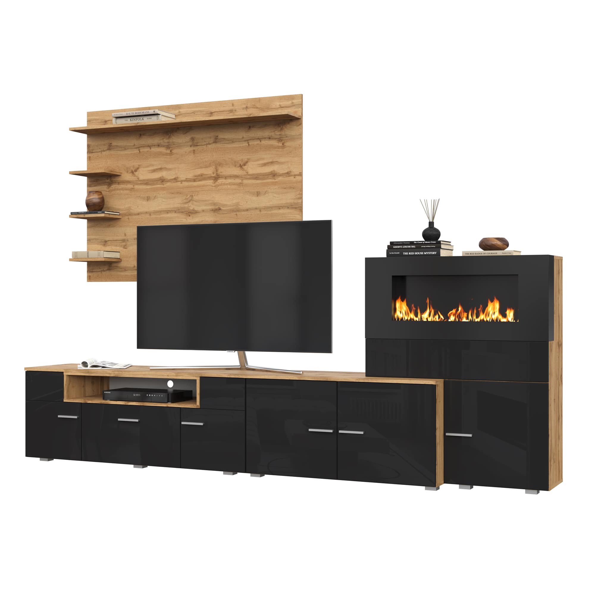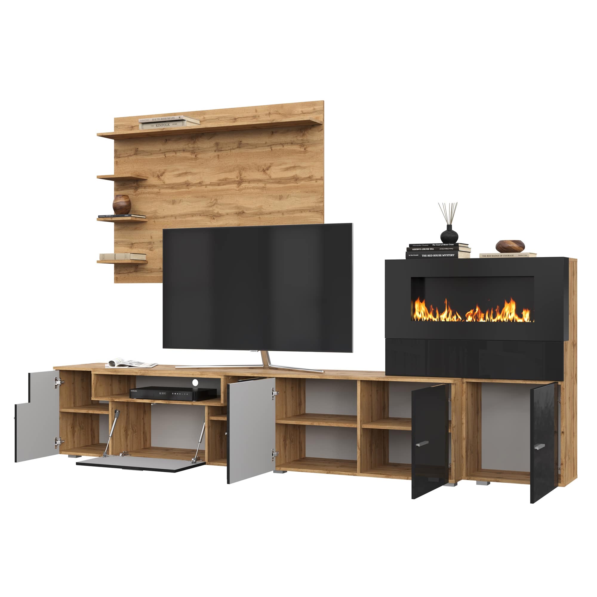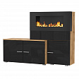 Гостиная НК RALF Дуб вотан/Черный глянец с биокамином