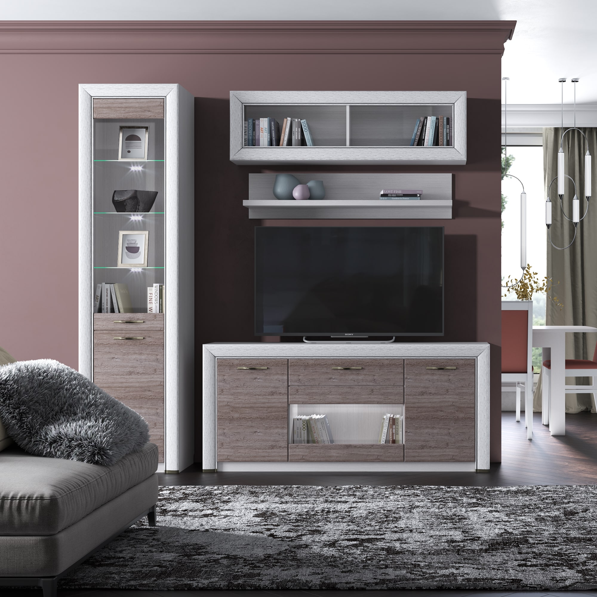 1. Тумба RTV 1V2D1S OLIVIA Вудлайн крем/дуб анкона 1608x363x719 мм