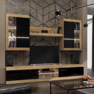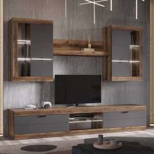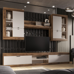 Погрузитесь в современный дизайн с нашей новой гостиной Прага. Теплый оттенок Дуба Вотан прекрасно сочетается с фасадами цвета графит, создавая элегантный контраст. Гостиная Прага гармонично впишется в любой интерьер, а возможность подсветки создаст атмосферу комфорта.