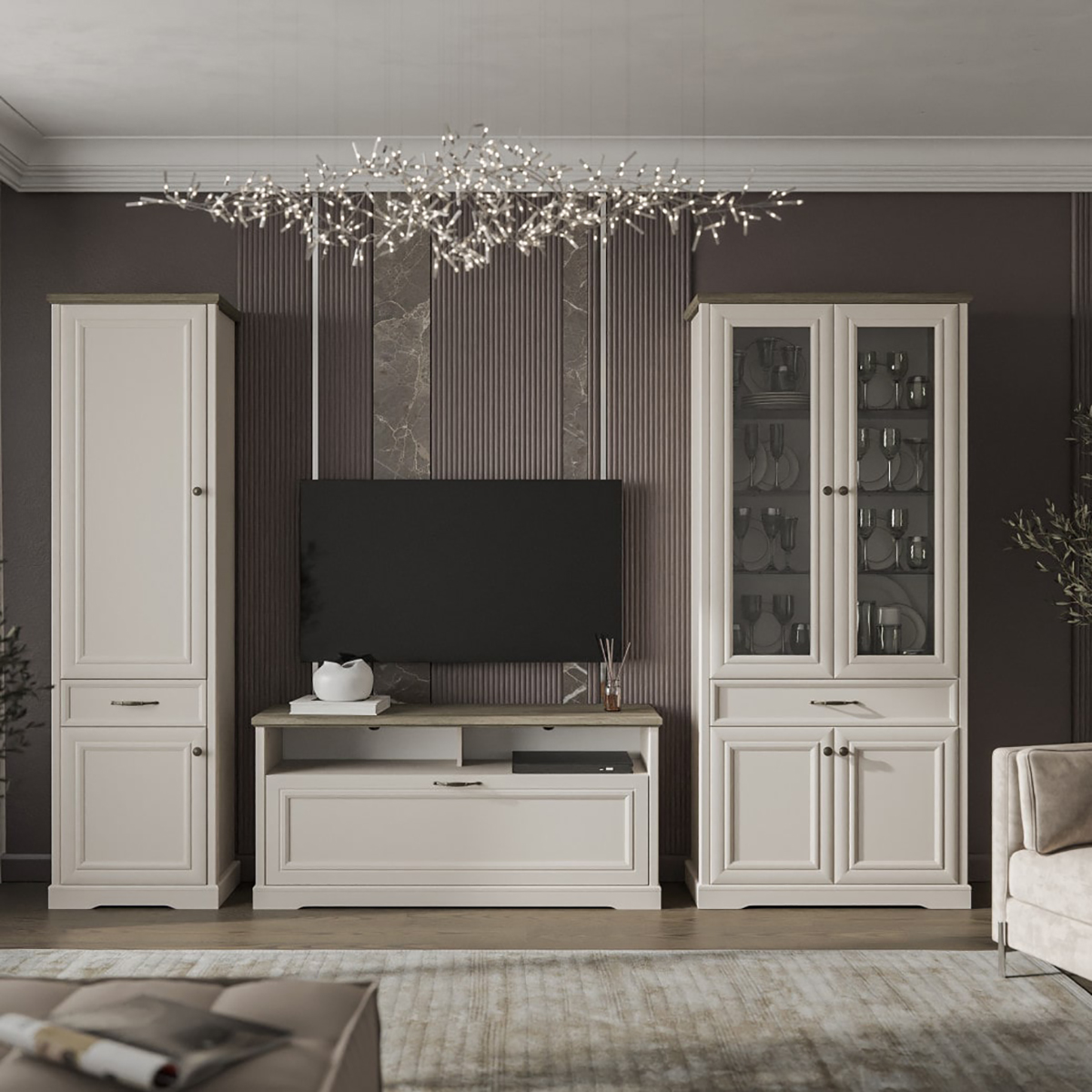 Коллекция выполнена в современном классическом стиле. Уникальное цветовое сочетание персидского жемчуга с теплой древесной текстурой дуб каньон открывают множество возможностей для обустройства практически каждой комнаты вашего дома.