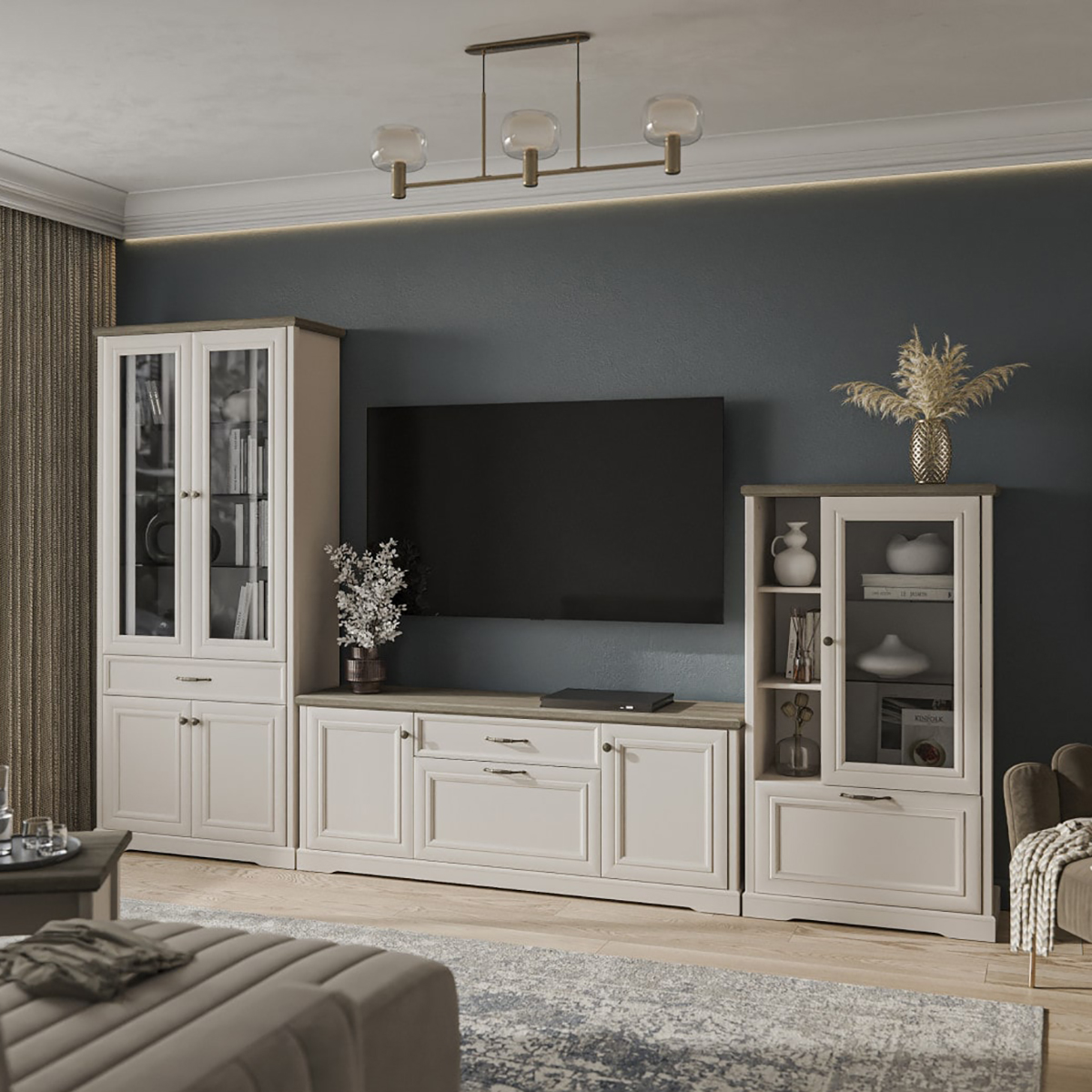 Коллекция выполнена в современном классическом стиле. Уникальное цветовое сочетание персидского жемчуга с теплой древесной текстурой дуб каньон открывают множество возможностей для обустройства практически каждой комнаты вашего дома.