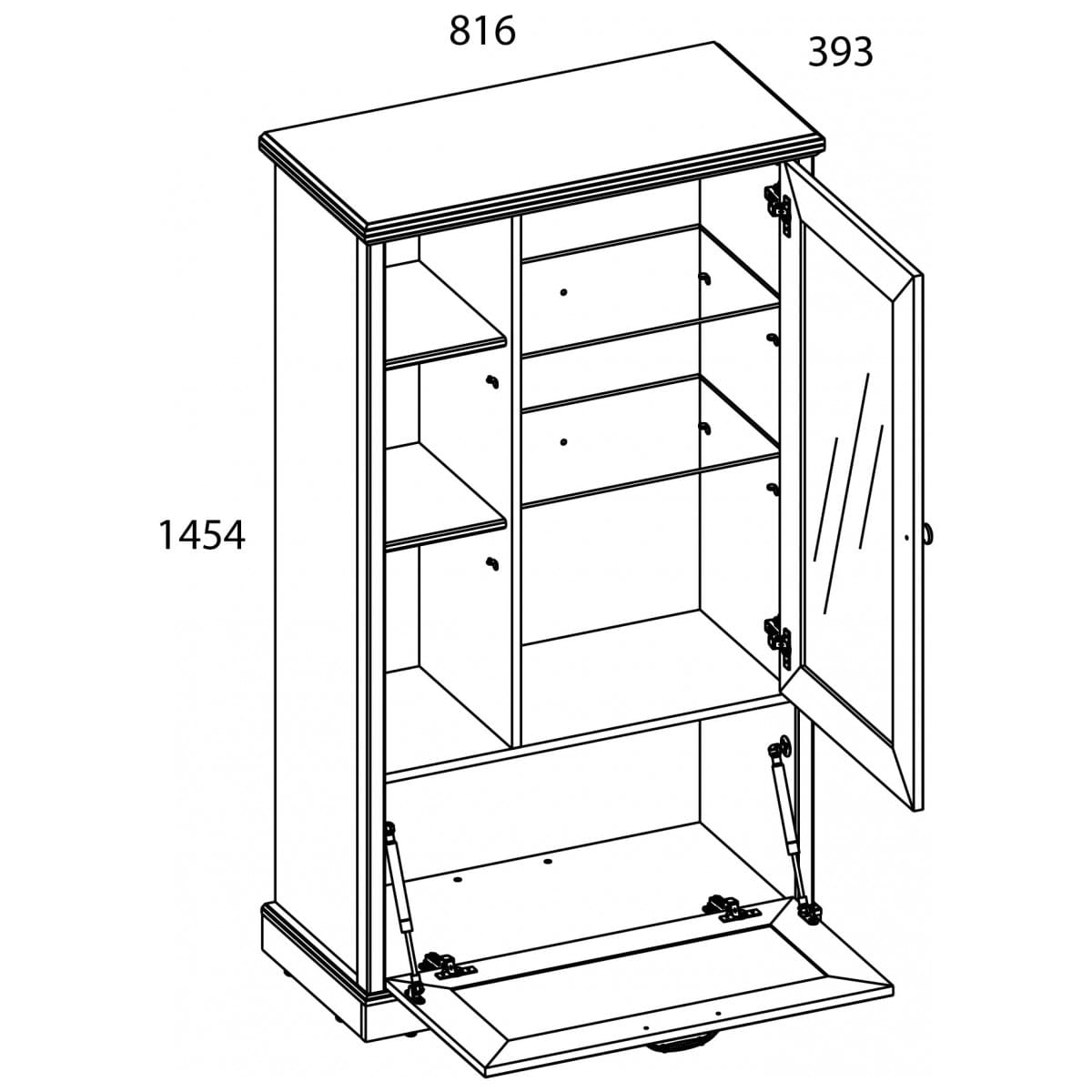 2. Шкаф с витриной TOSCANA NEW 1V1D3N 816x393x1454 мм