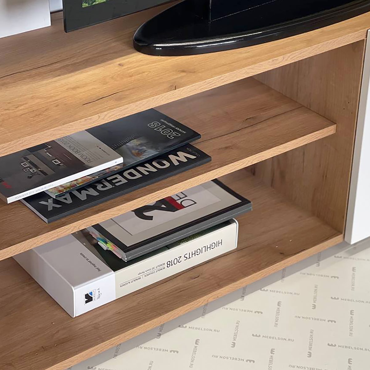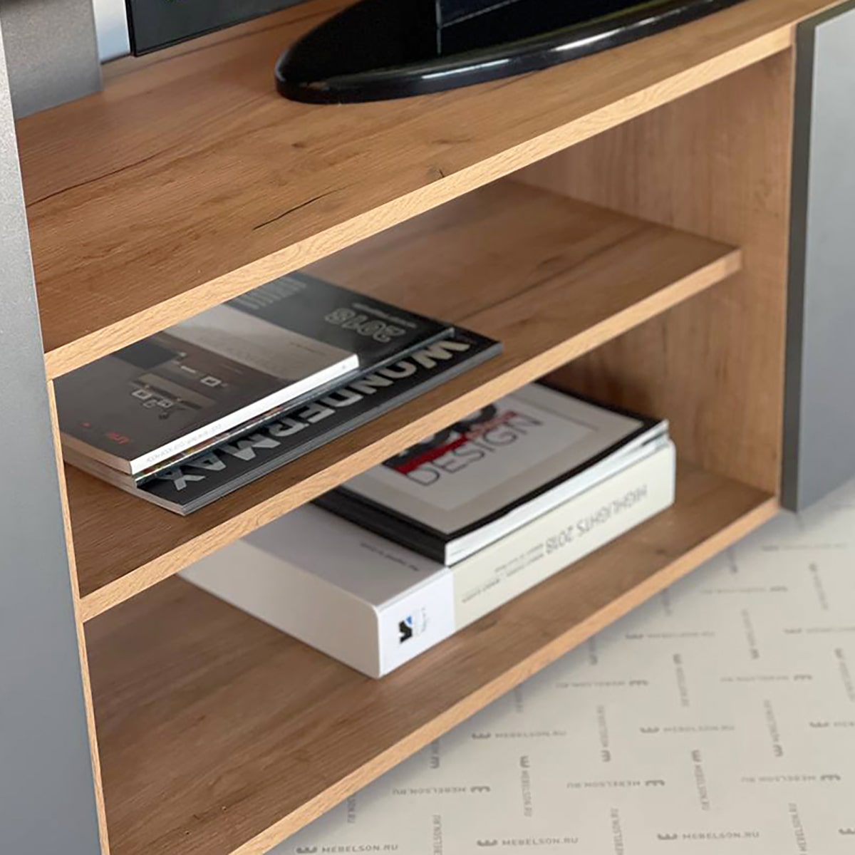 Гостиная "Бери"- это закрытые и открытые секции, место для ТВ с диагональю до 55 дюймов и декоративными полками для ценных и важных мелочей.