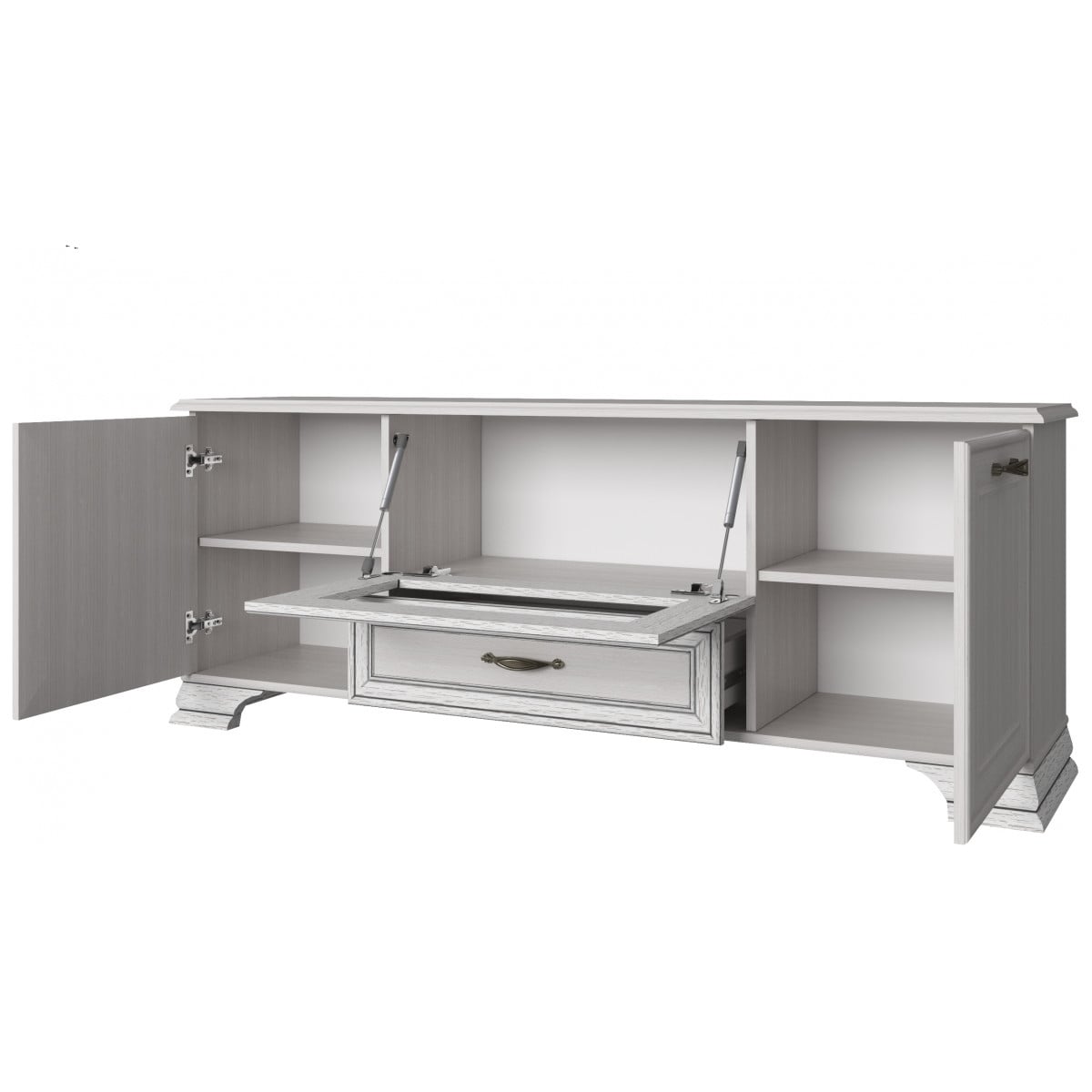 В коллекции собраны все атрибуты, присущие классическому стилю. Благородный светлый оттенок рамочно-филенчатых фасадов с древесной текстурой и изысканная фурнитура роскошно дополнят различный по назначению интерьер.